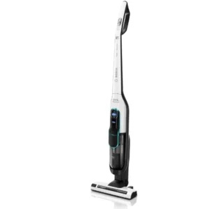 جاروشارژی بوش مدلBCH86HYG1 با طراحی شیک و مدرن به رنگ سفید از باکیفیت ترین متریال برای ساخت بدنه آن استفاده شده است. این جارو شارژی به صورت ایستاده طراحی شده و دارای قابلیت ایستادن بدون نگهدارنده یا جایگاه اتصال می باشد. به لطف طراحی باریک بدنه جارو می توان آن را درون کمد یا گوشه ای از اتاق قرار داد بدون آنکه فضای زیادی را اشغال کند.